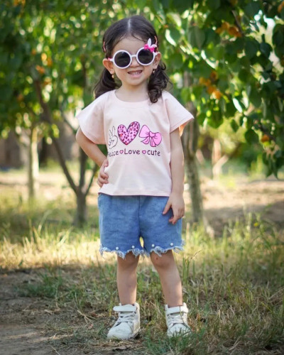 کراپ تک آستین کیمونو پنبه ای دخترونه طرح قلب کد 645