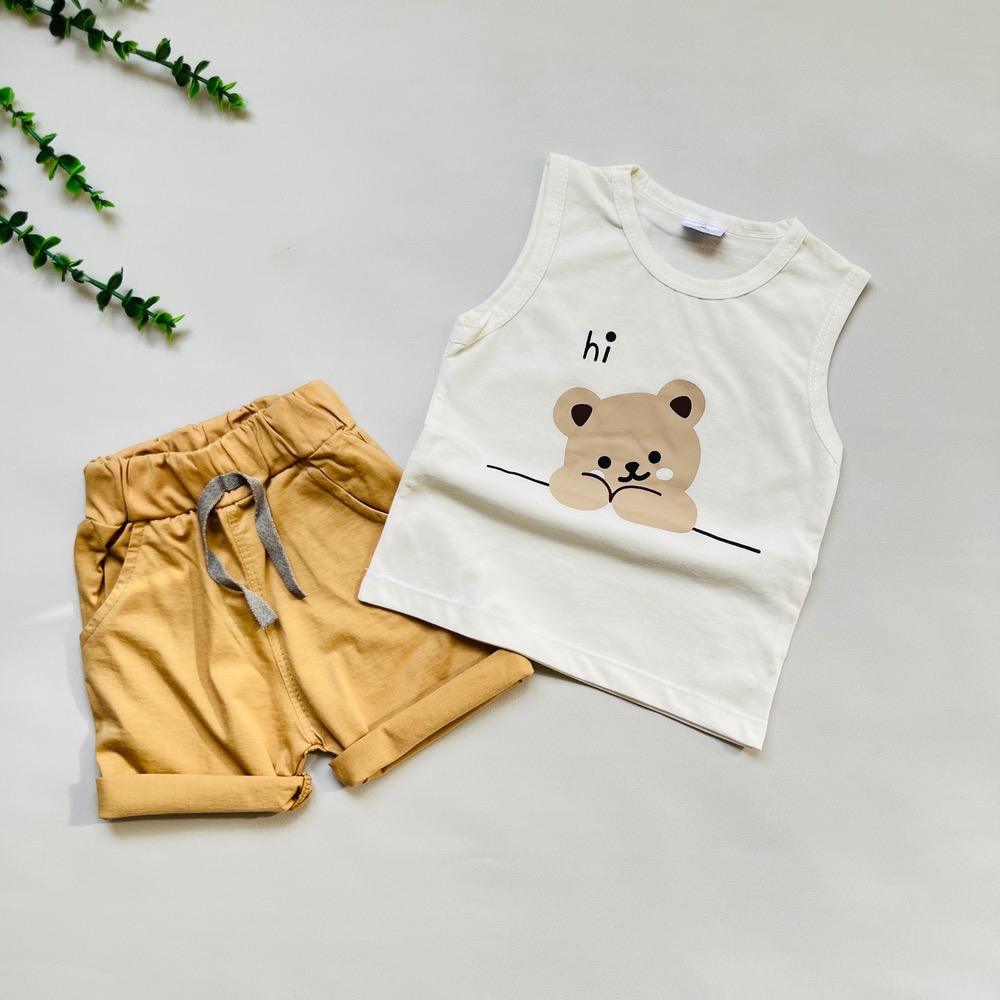 ست دو تیکه وارداتی بچگانه طرح خرسی hello bear کد 1016
