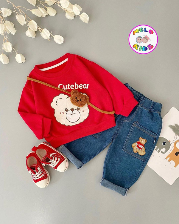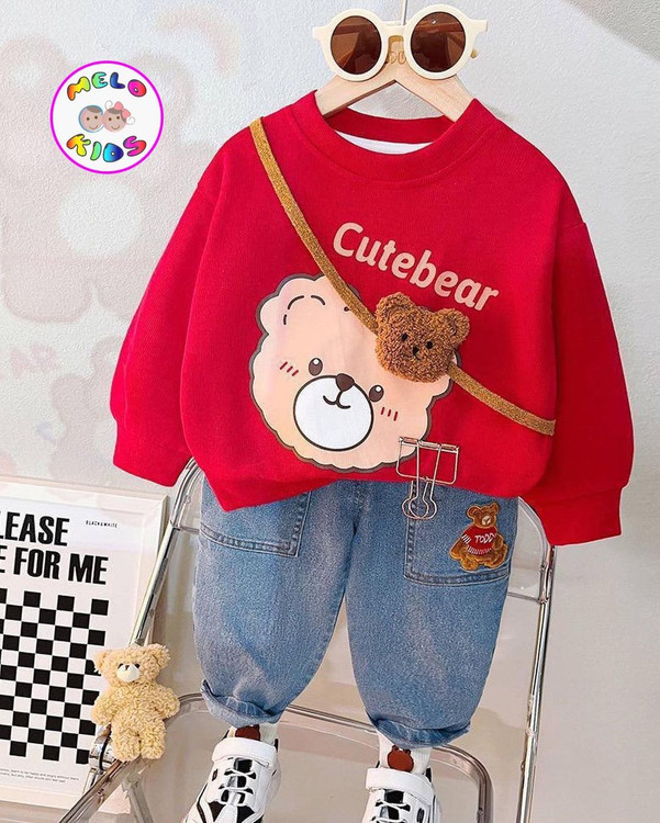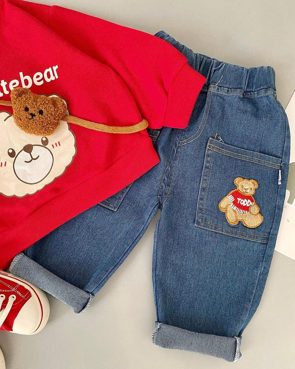 ست بلوز و شلوارجین وارداتی طرح خرس پشمالو
