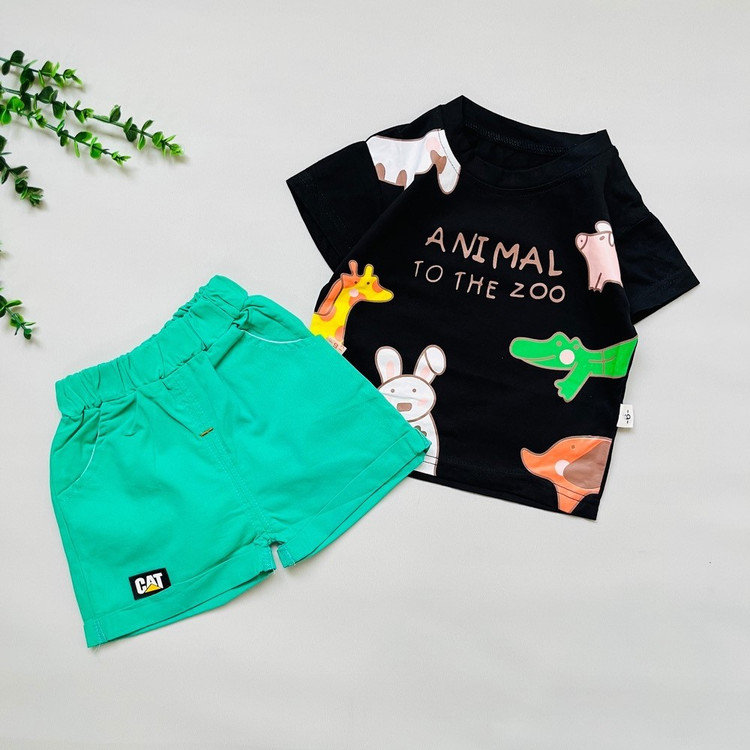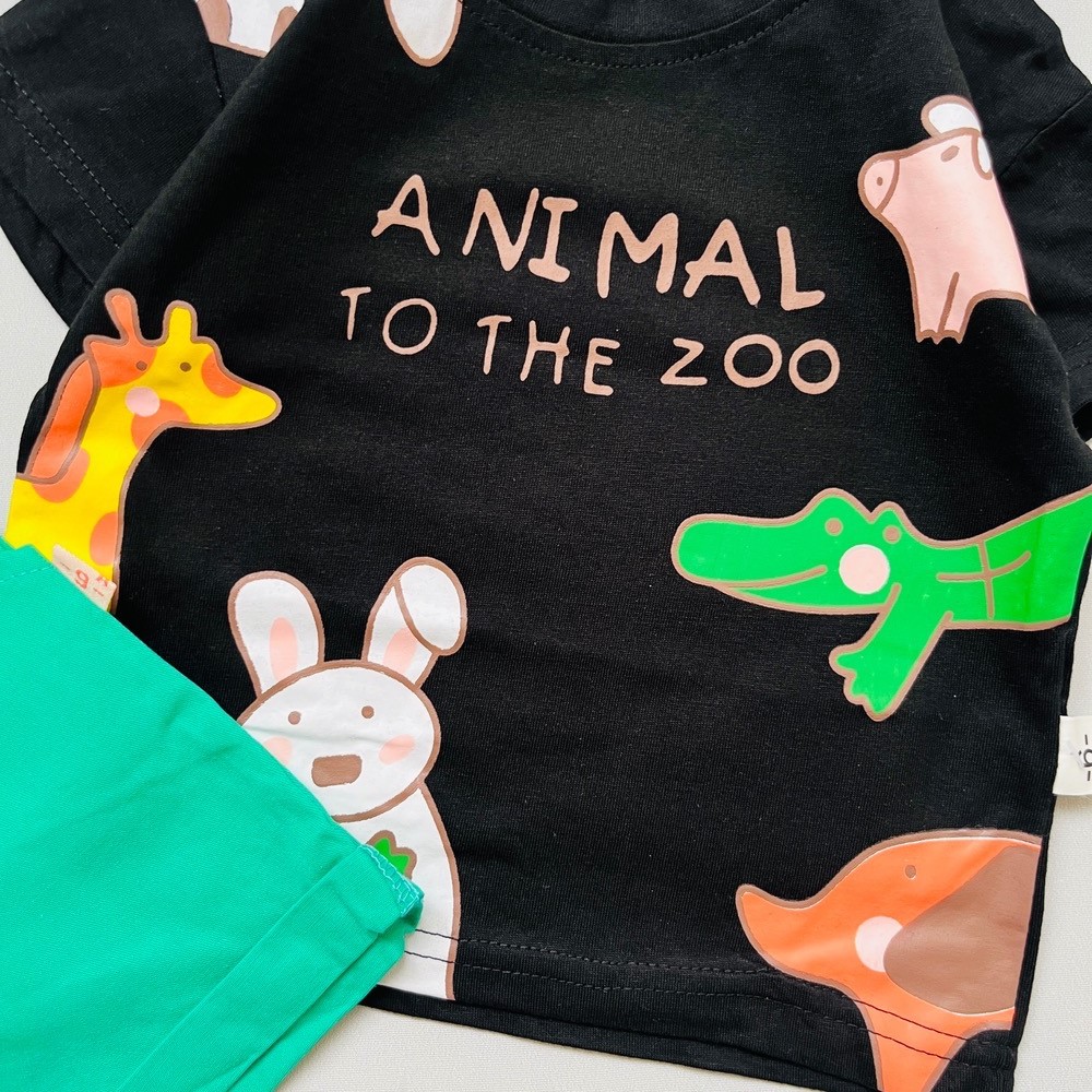ست تیشرت شورتک بیرونی بهاره وارداتی طرح حیوانات کد 1064
