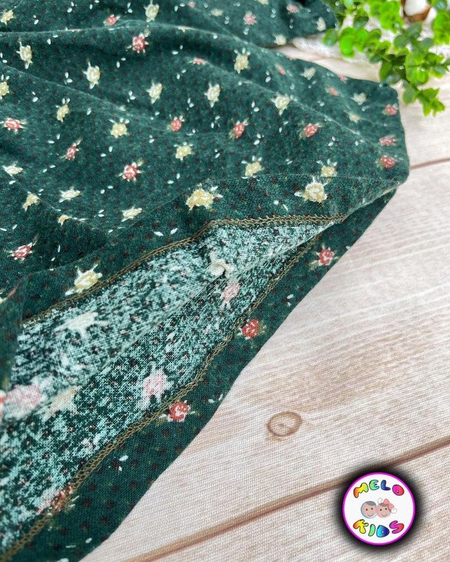 پیراهن نقلی چین دار لنین طرح گل ریز سبز
