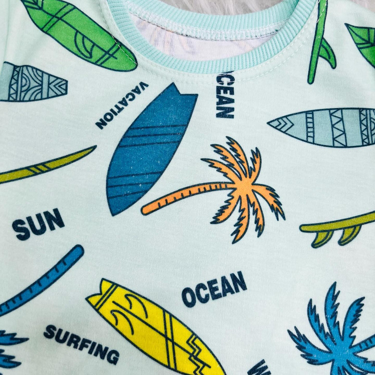 ست تیشرت شورتک پنبه ای راحتی طرح هاوایی