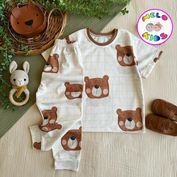 ست تیشرت شلوار راحتی پنبه ای طرح خرسی