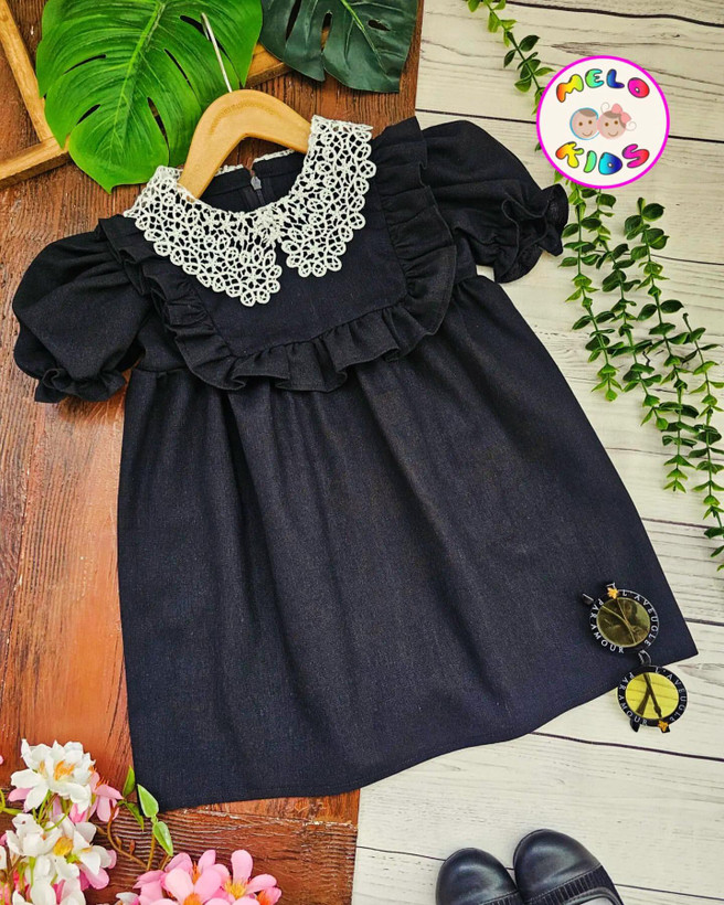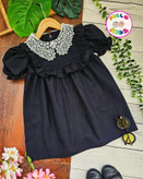 پیراهن لینن یقه قلاب بافی مشکی