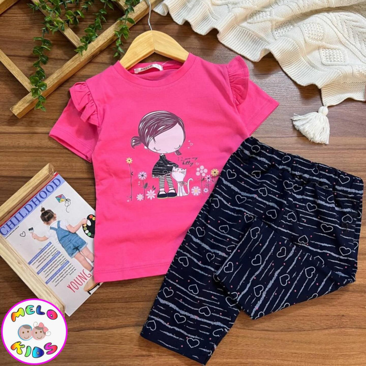 ⚜️ ست تیشرت و شلوارک (طرح دخترک و پیشی )👧🐱