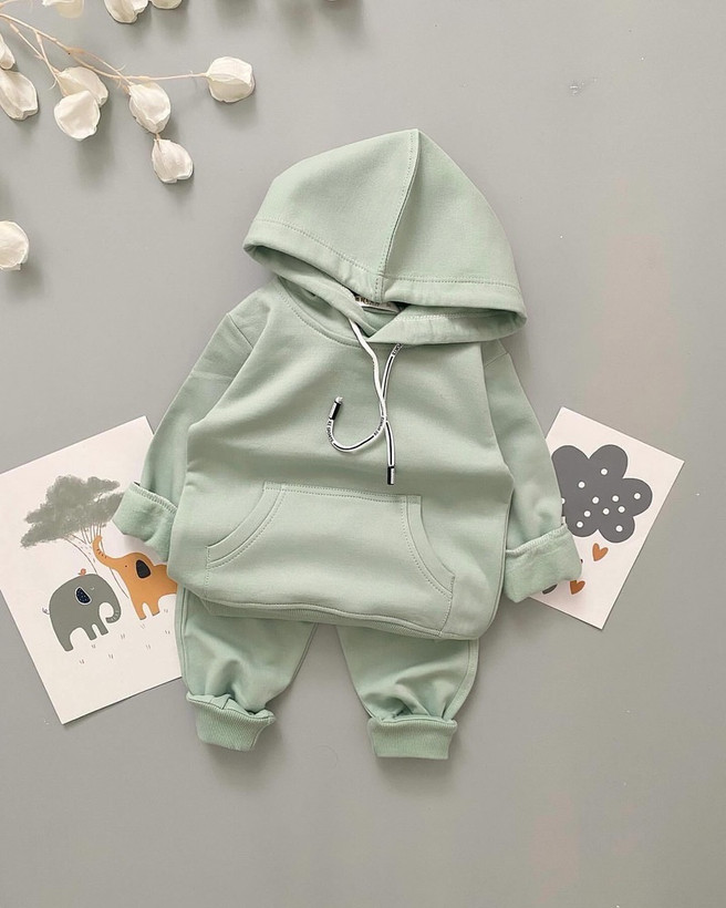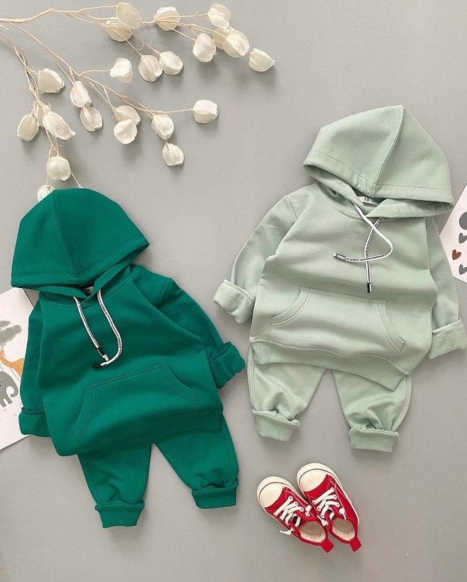 ست هودی شلوار کرک دار اسپرت تک رنگ