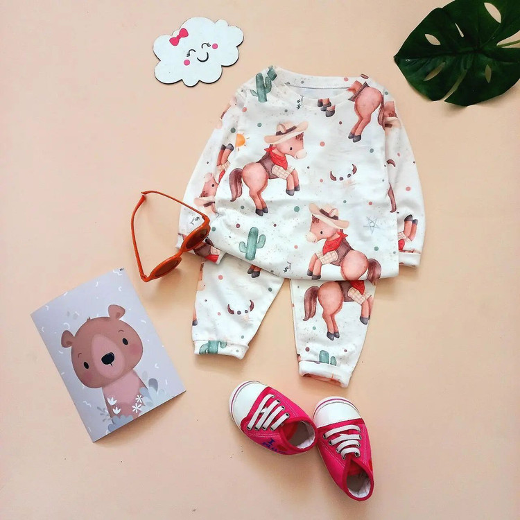 🔰 ست بلوز و شلوار راحتی طرح اسب کلاه دار 🐴