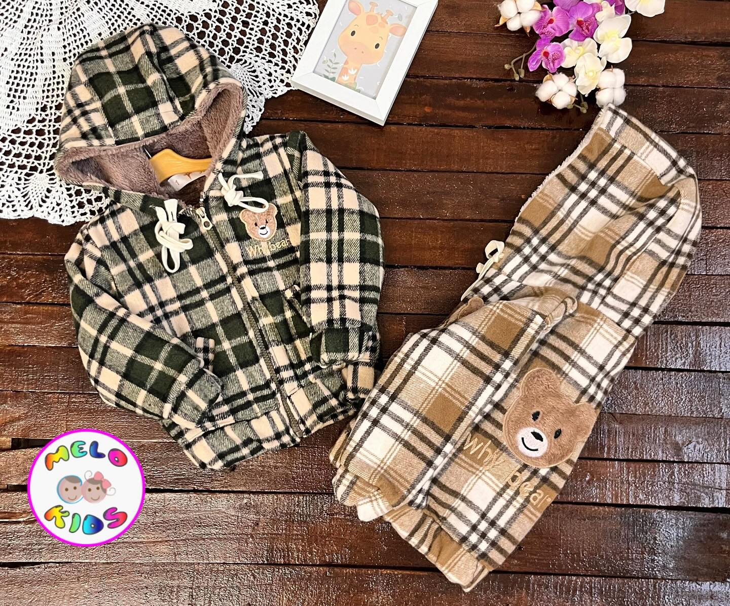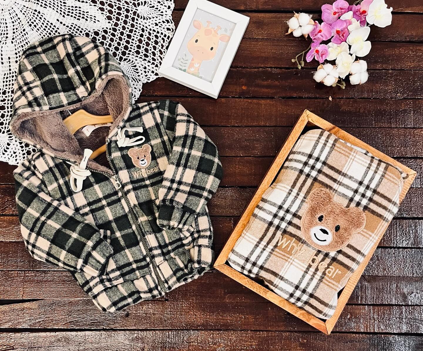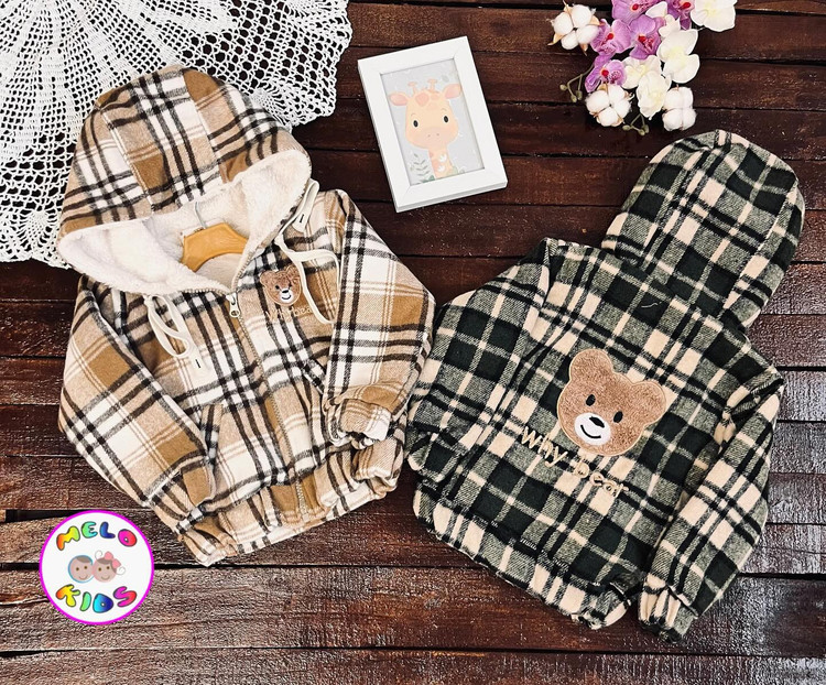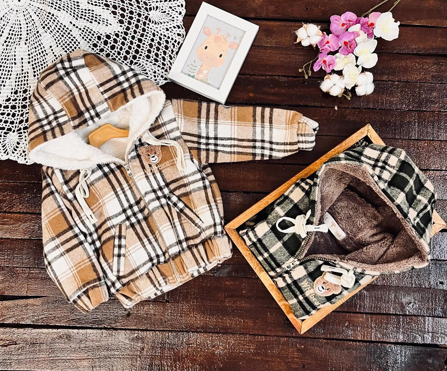 💢 سویشرت چهارخونه داخل خز طرح تدی🐻🐻🐻