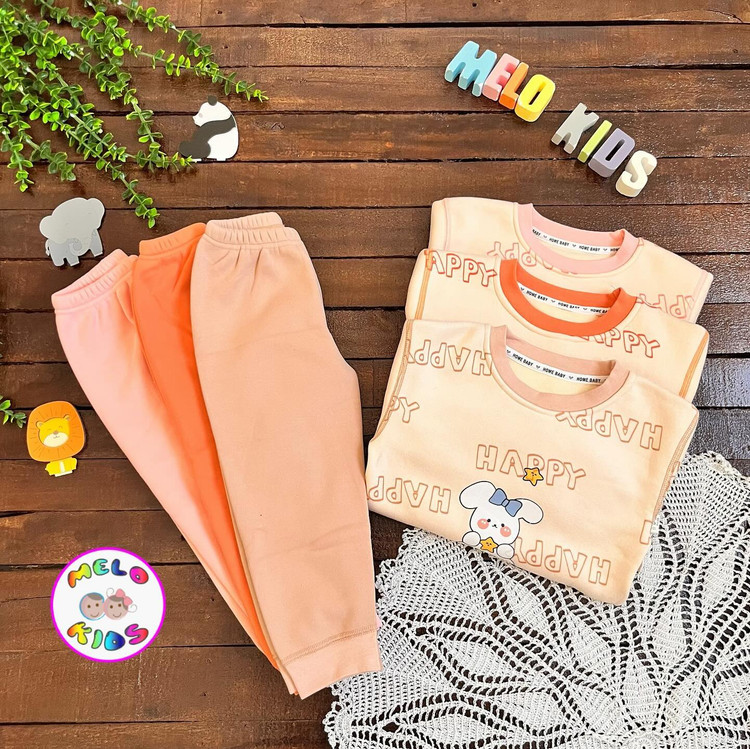 ست وارداتی بلوز شلوار لاینردار توکرکی HomeBaby طرح خرگوش happy