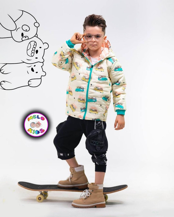 کاپشن دو رو و ضد آب پسرانه طرح ماشین و اتوبوس کد 431