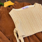 پیراهن دوتیکه مخمل کبریتی آسو با رویه طرح بافت