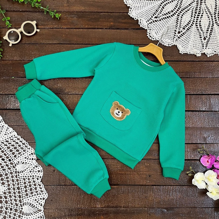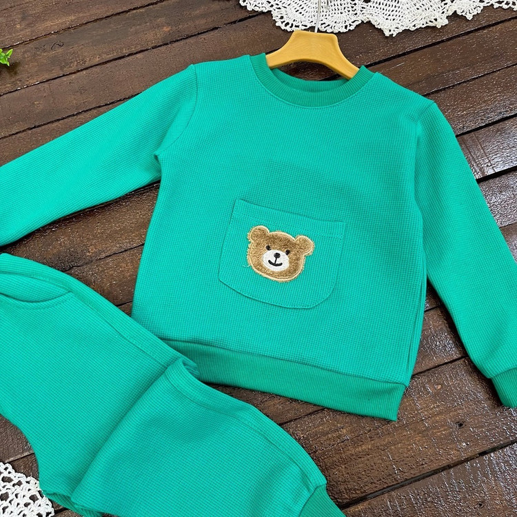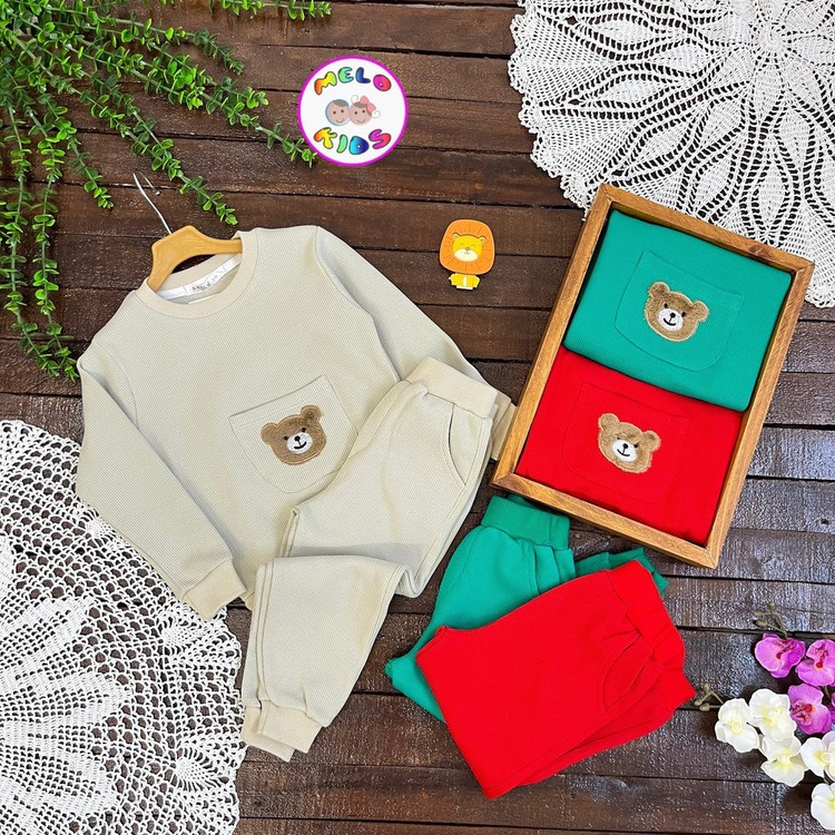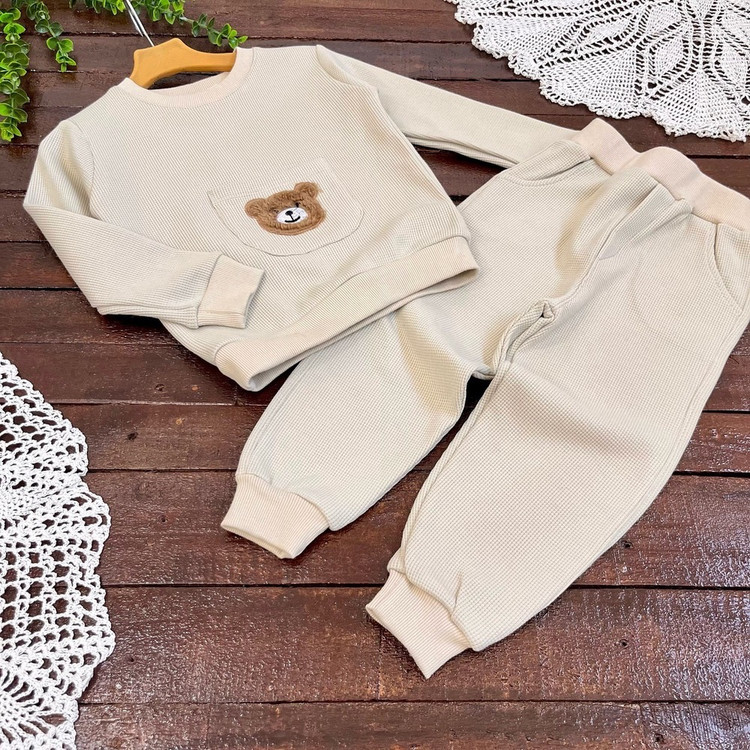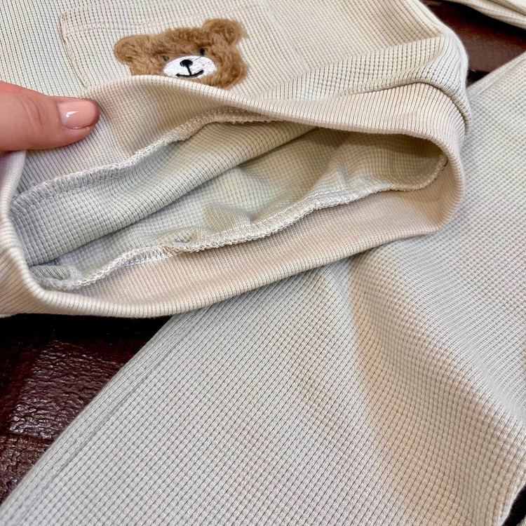 🌱ست بلوز شلوار بیسکوییتی طرح تدی🧸
