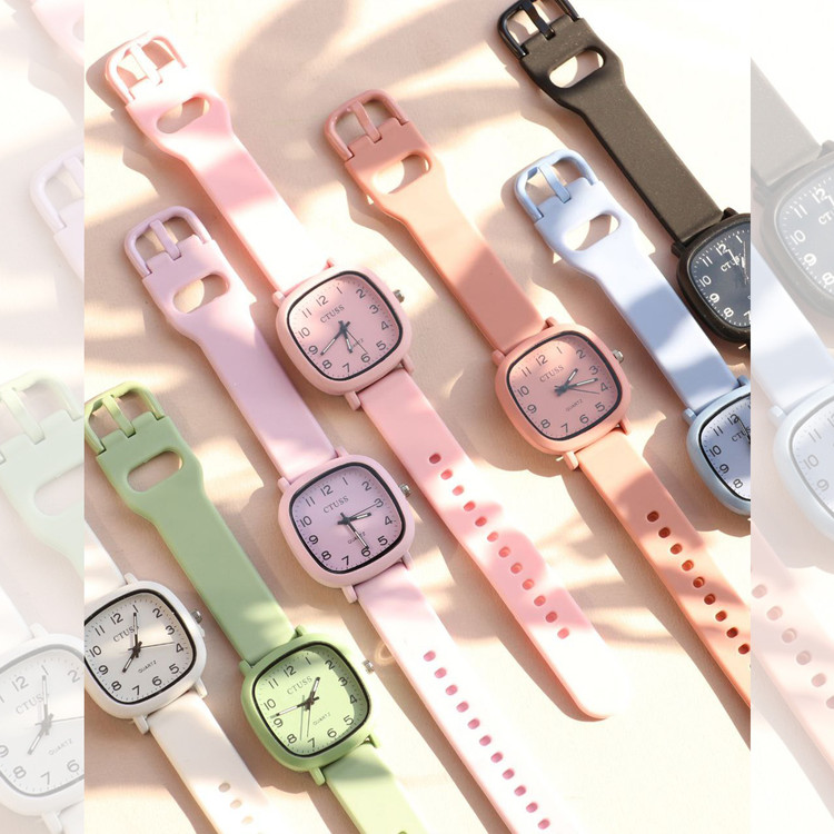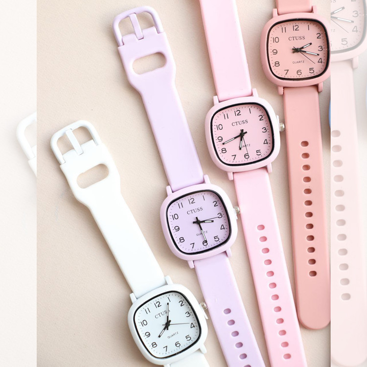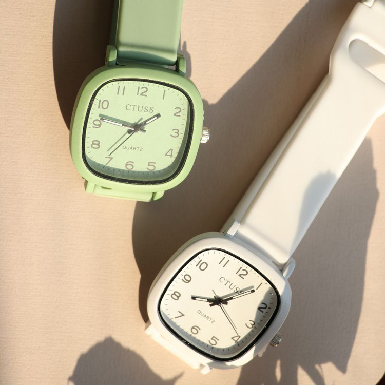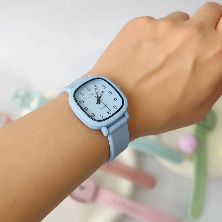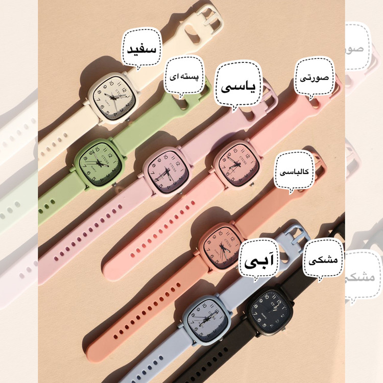 صفحه این ساعت مربعی و بند آن سیلیکونی ضد لک می باشد.
