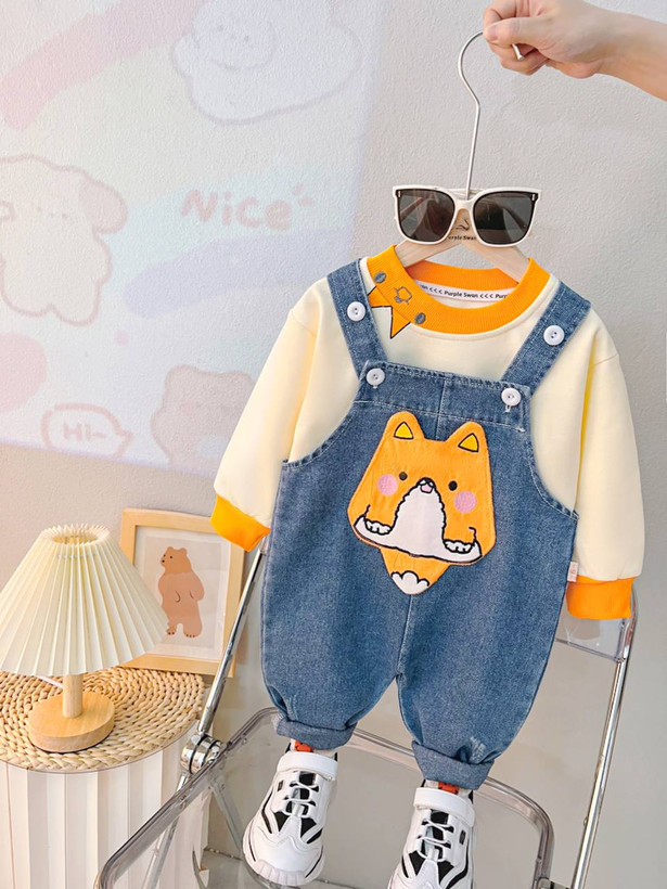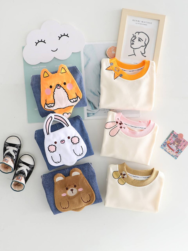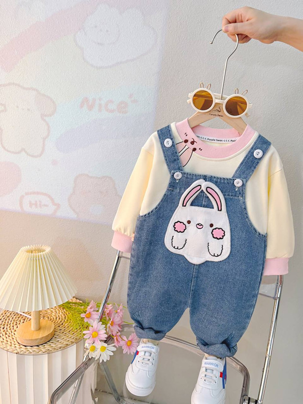 ست دوتیکه بلوز و بیلر جین وارداتی خرگوش ، گربه و خرسی کد 505