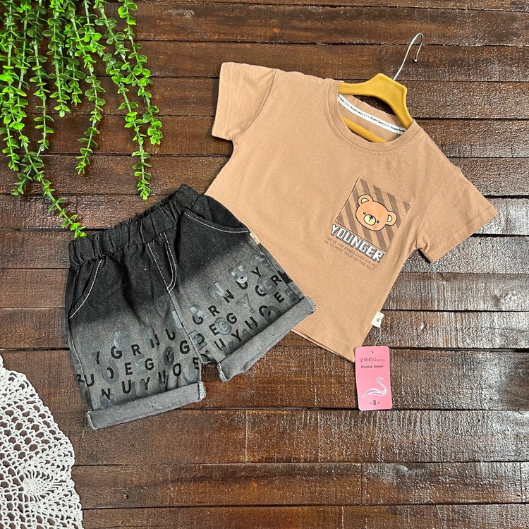 تیشرت نخ پنبه درجه یک /شورتک جین گرم بالا وارداتی