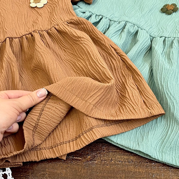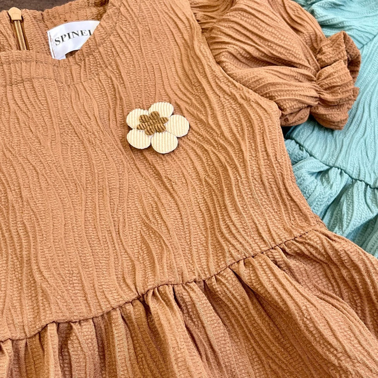 پیراهن دخترونه آستین پفی نخی کمردار کد ۶۳۰