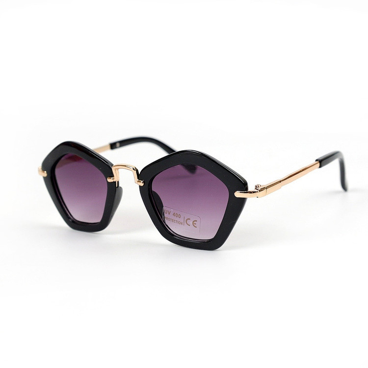 عینک آفتابی دودی بچگانه دسته فلزی وارداتی فریم چند ضلعی کد ۶۴۱