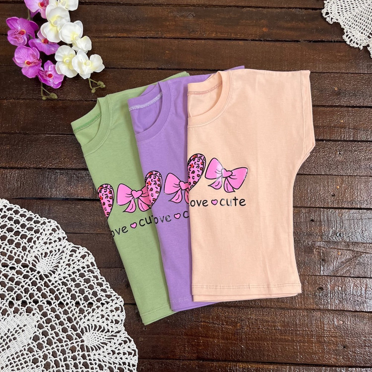 کراپ تک آستین کیمونو پنبه ای دخترونه طرح قلب کد 645