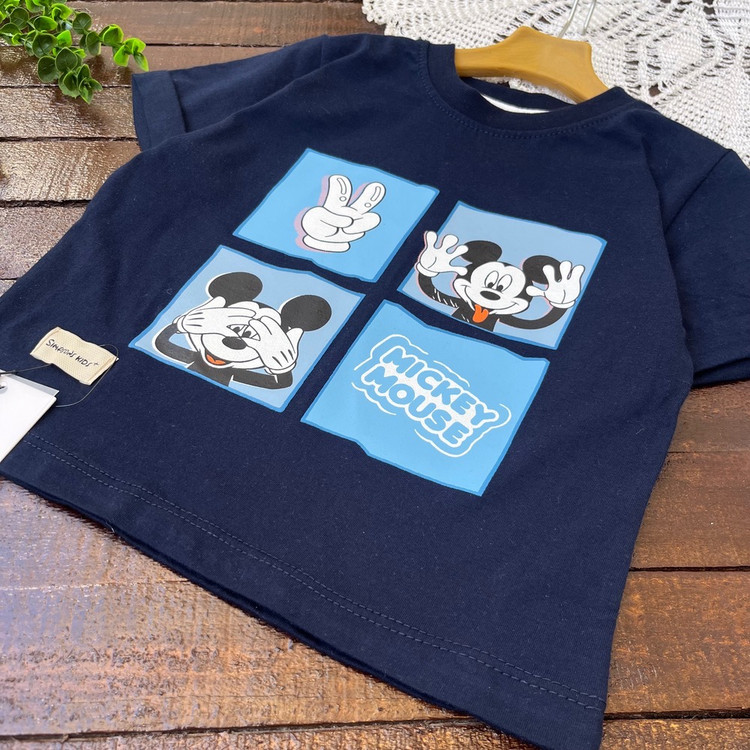 ست تیشرت شلوارک مینیمال دورس پنبه ای اسپرت راحتی طرح میکی موس سورمه ای کد ۶۸۰