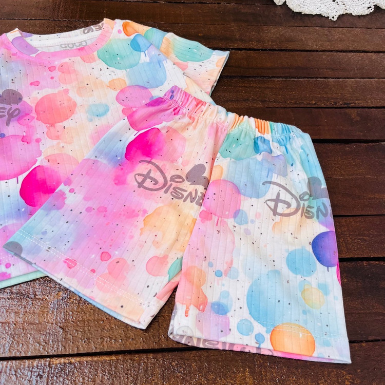 🌼 ست تیشرت و شورتک ریلی طرح دار فانتزی