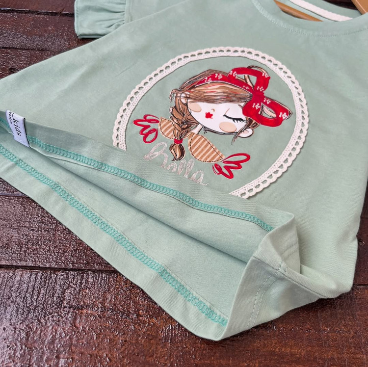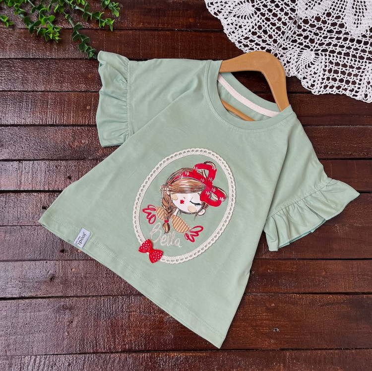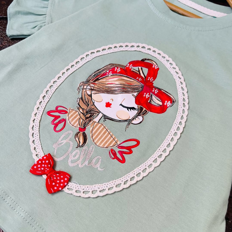 🌞 تیشرت تک آستین چیندار طرح دختر پاپیونی (قاب عکس)
