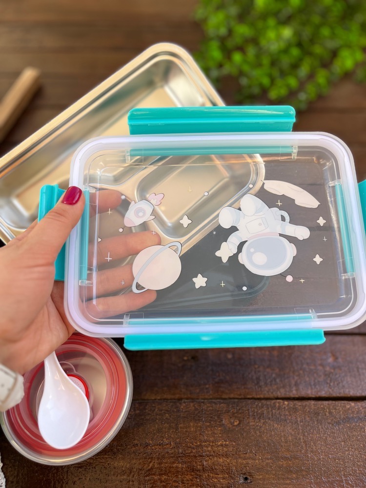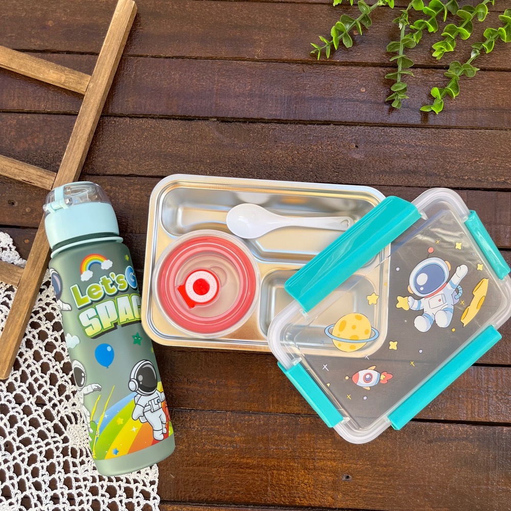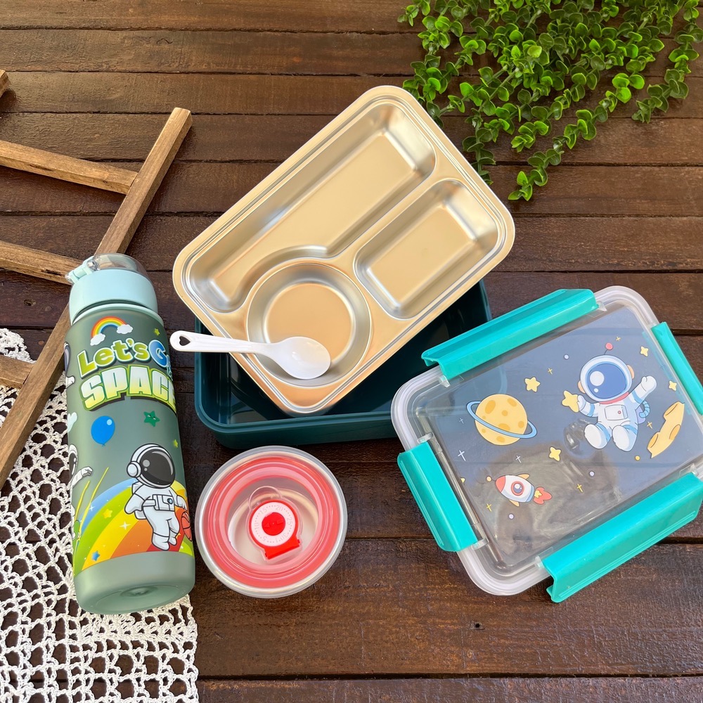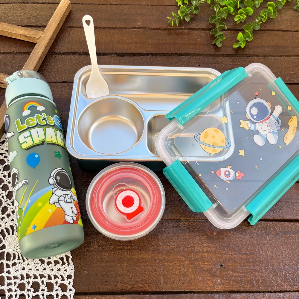 ظرف غذای وارداتی لانچ باکس داخل استیل کاسه دار طرح فضانورد کد ۷۲۵