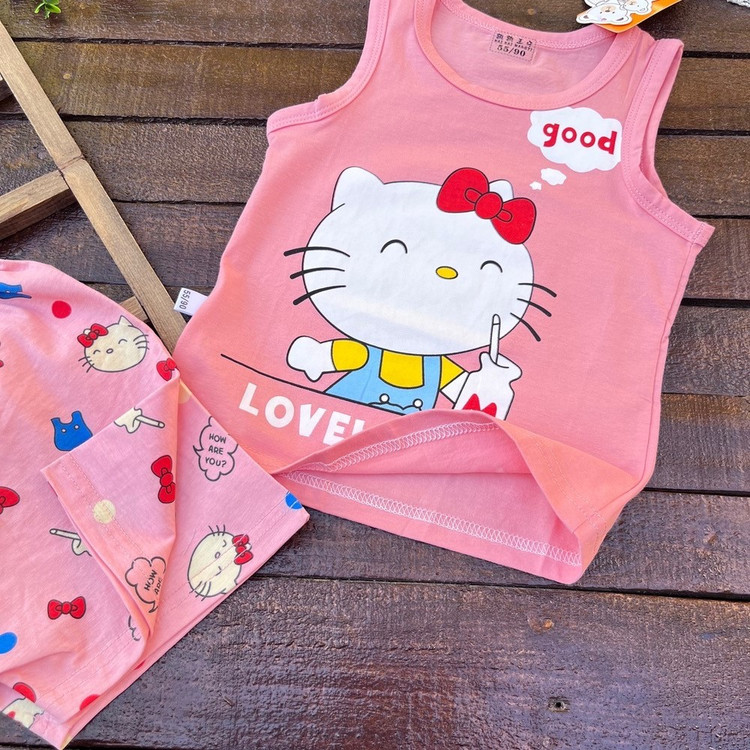 ست رکابی شورتک راحتی پنبه وارداتی دخترونه طرح کیتی کد ۷۳۱