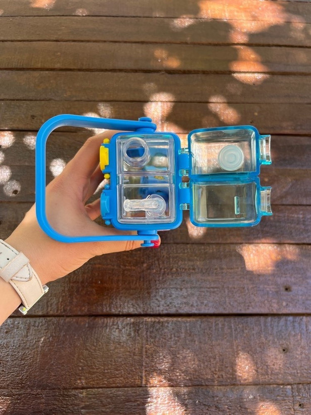 دیگه کودکتون راااحت میتونه این قمقمه جمع و جور همراه با بند دوشی بندازه دور گردنش و دیگه هم دستاش آزاده هم همیشه آب یا نوشیدنی مورد علاقش همراهشه