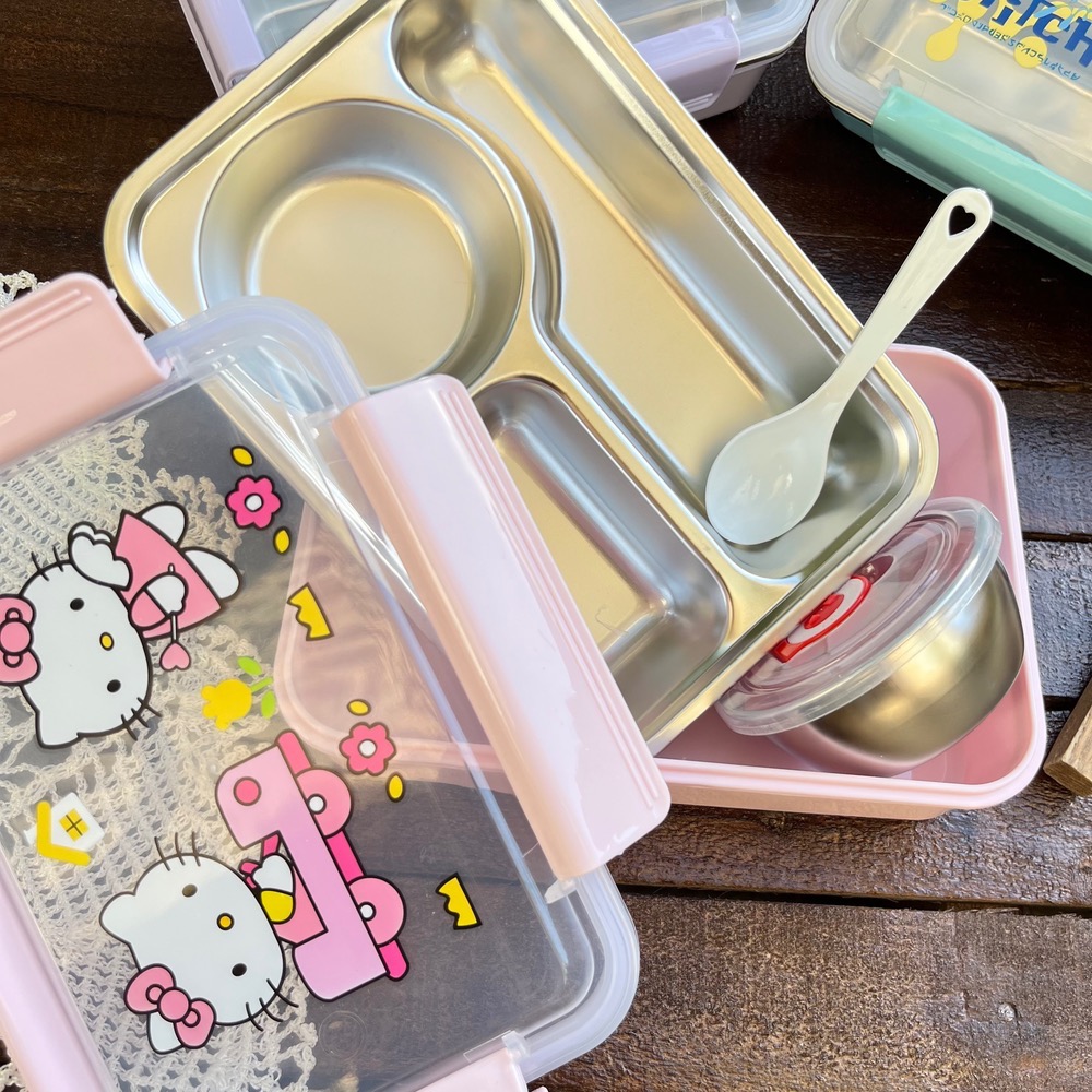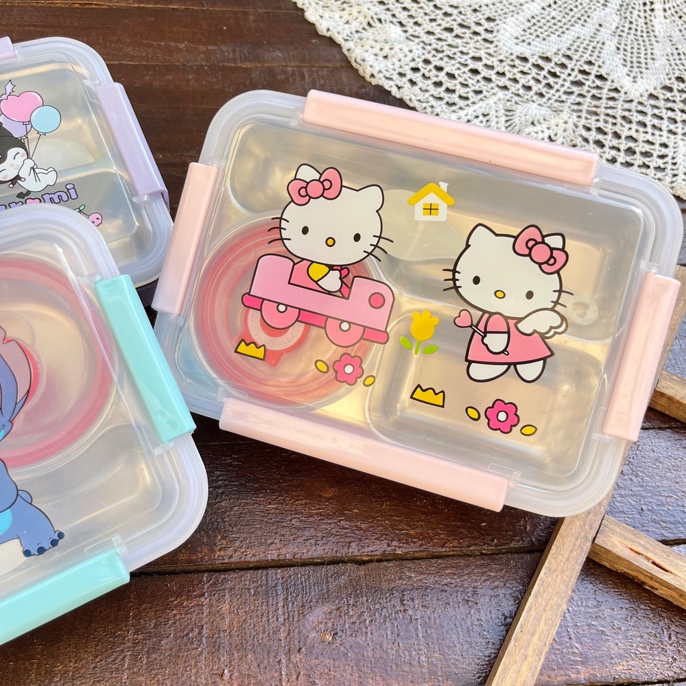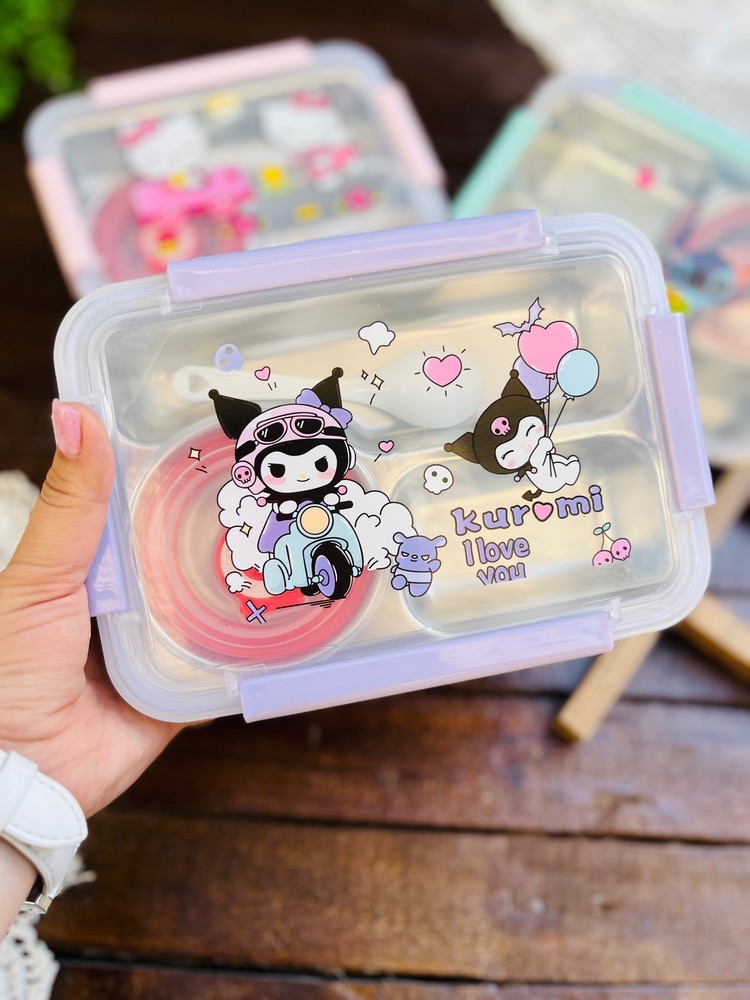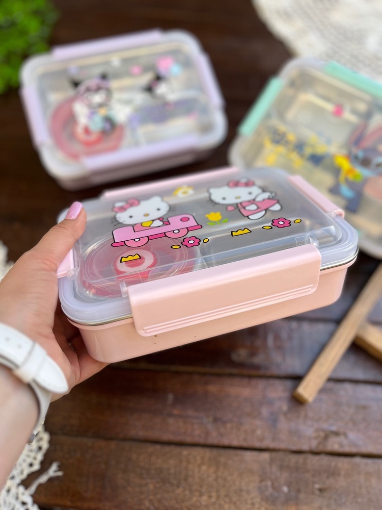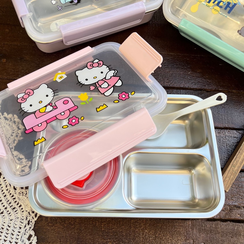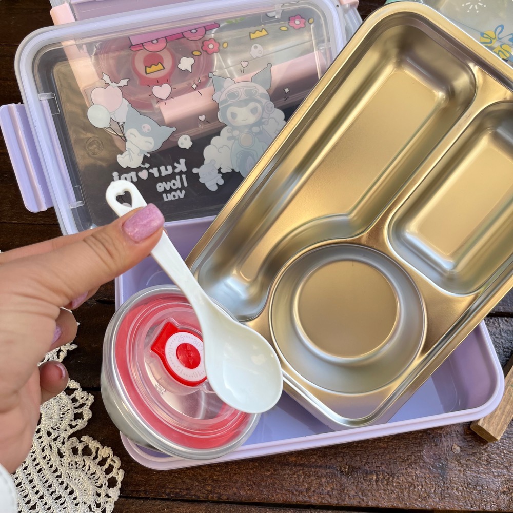 ظرف غذا مهدکودک لانچ باکس داخل استیل کاسه دار واشردار وارداتی طرح کرومی و استیچ و کیتی کد ۷۷۵