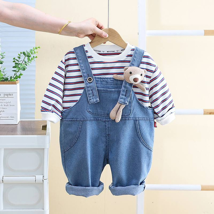 ✅ ست بلوز و پیشبندی جین اورجینال وارداتی طرح تدی برجسته 🐻