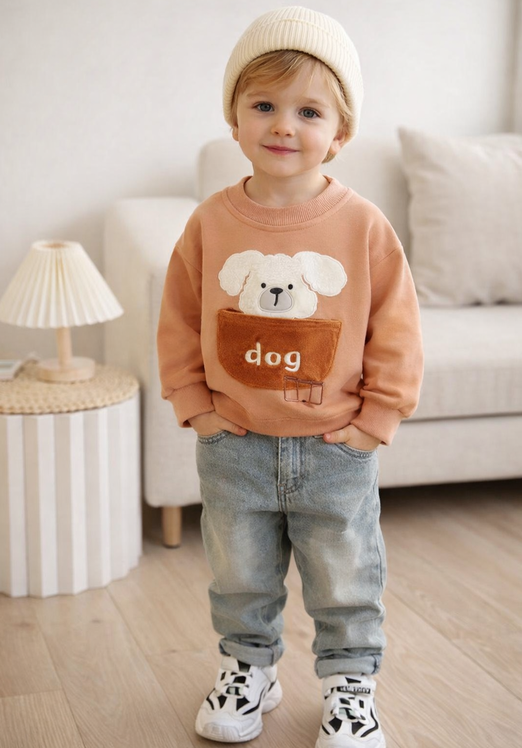 ویژگی ها: اسپرت مناسب ست خواهر برادری/ رنگ بلوز کالباسی تیره / طرح سگ روی بلوز گلدوزی شده