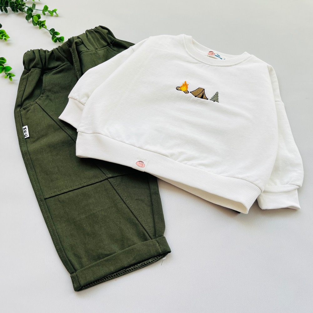 ویژگی ها: اسپرت مناسب دختر و پسر/ رنگ بلوزسفید شیری و شلوار سبز تیره