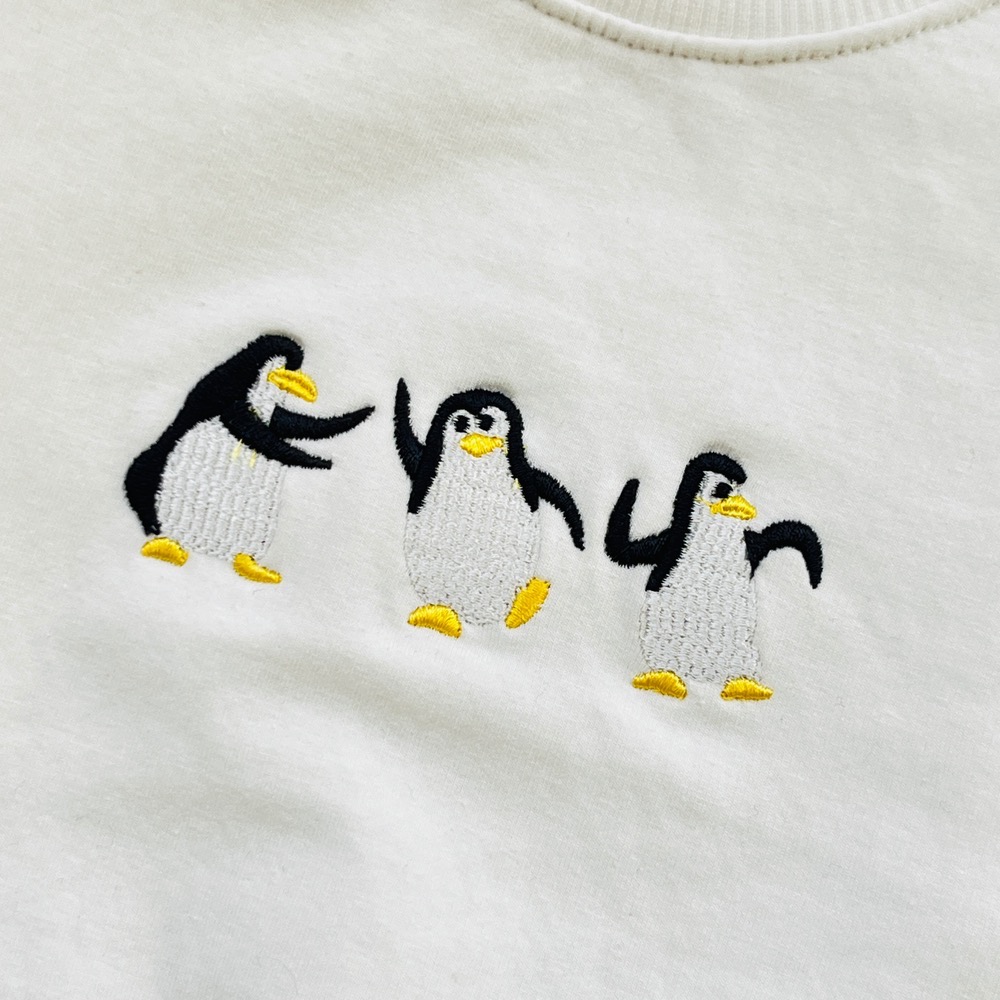 ویژگی ها: رنگ بلوز سفید شیری و شلوار مشکی/ پنگوئن ها گلدوزی شده و برچسب نیستن