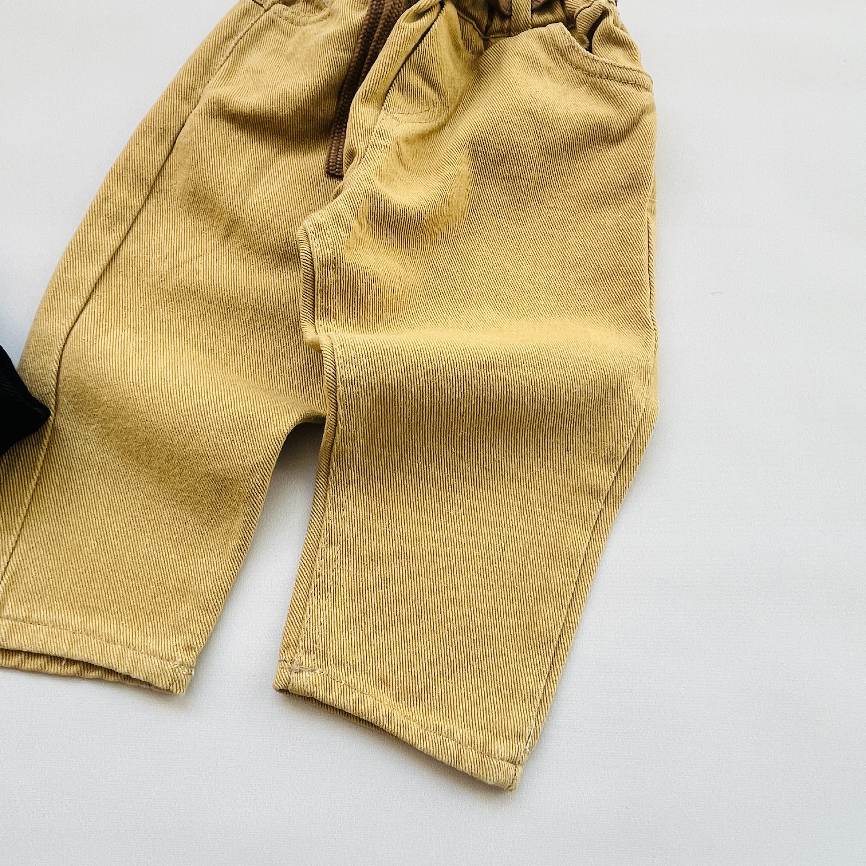ویژگی ها: کمر کش و راحت/ بند تنظیمی داره/ رنگ شلوار مشکی و نخودی تیره